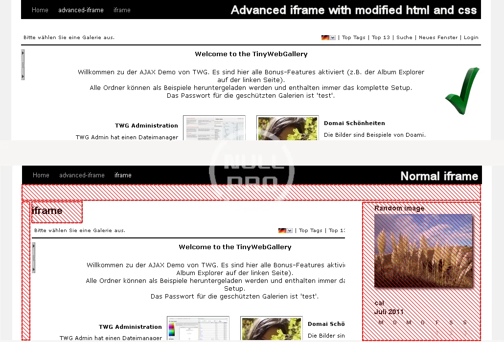 - Stellen Sie 'advanced_iframe' in Ihren Seiten oder Beiträge ein. Die optional Sicherheits-Code kann im Einstellungs-Menü unter 'Advanced iFrame Pro' gefunden werden.