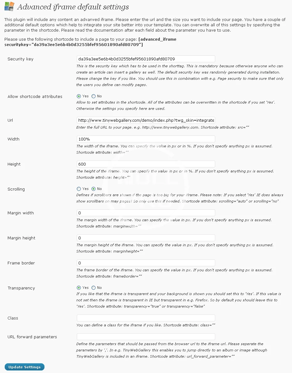 Um einen einfachen Iframe einzubetten, gehen Sie zur Administration und folgen Sie den Anweisungen auf der Registerkarte der grundlegenden Einstellungen. Sie können entweder einen grundlegenden Shortcode verwenden und die Einstellungen im Administration-Menü einstellen oder direkt in dem Shortcode die Einstellungen überschreiben. Bitte lesen Sie auch die FAQ und schauen Sie sich die freien und pro-Beispiele an.