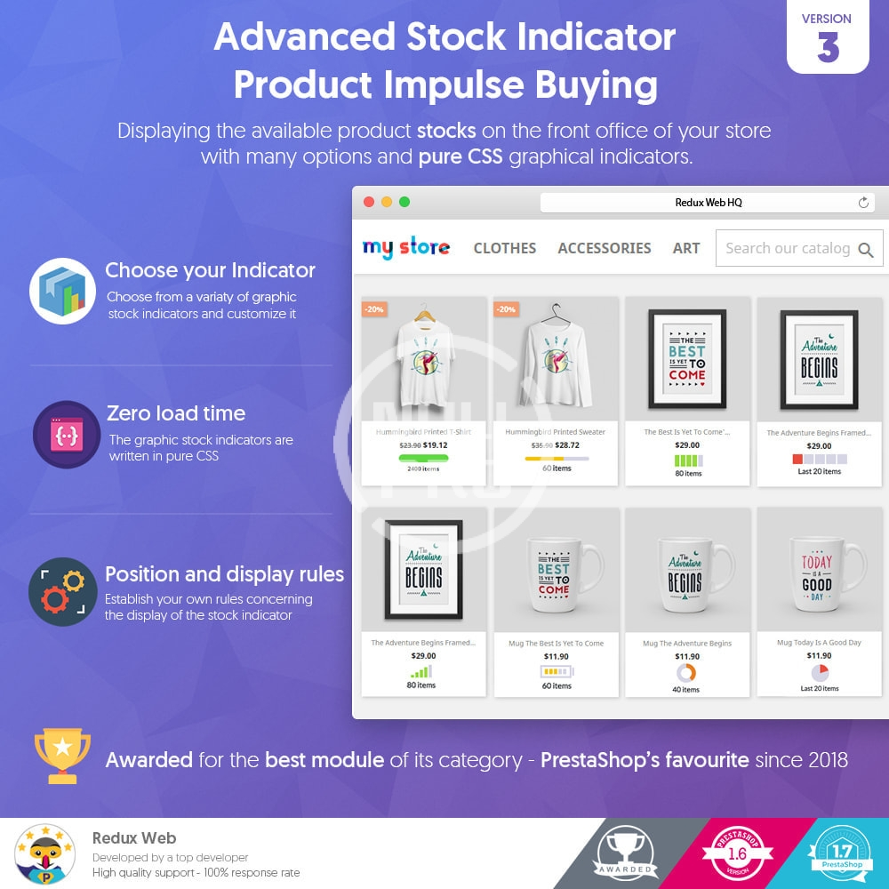 Advanced Stock Indicator - Product Impulse Buying Prestashop module comes with the following features:
