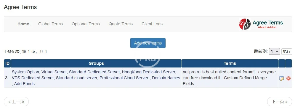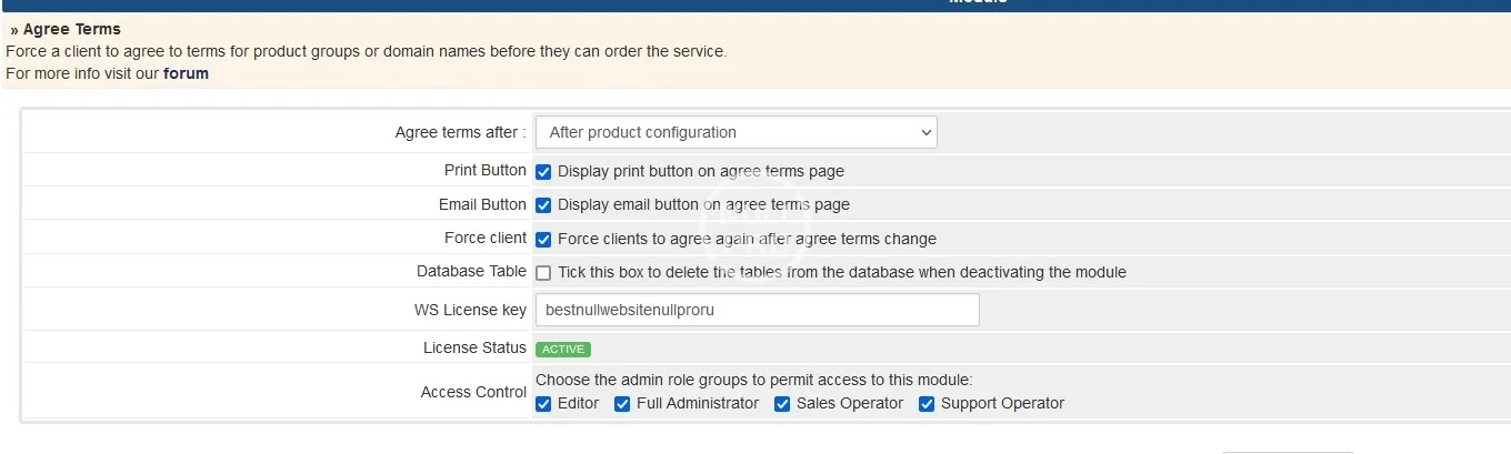 You can set up this module based on different terms and conditions for individual product groups. For example, if you sell dedicated server and you have difference terms then what you show on your site then you can add the term of this group only. Now when customers order this service/server then it shows the terms they need to agree to. Now if you sell VPS or other stuff then you can choose a different term for that also.