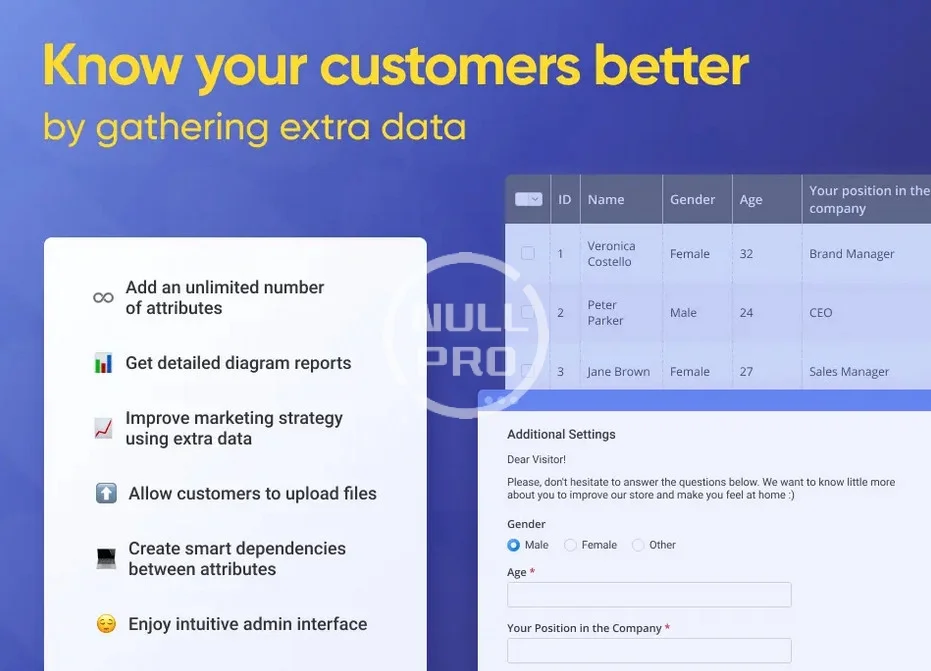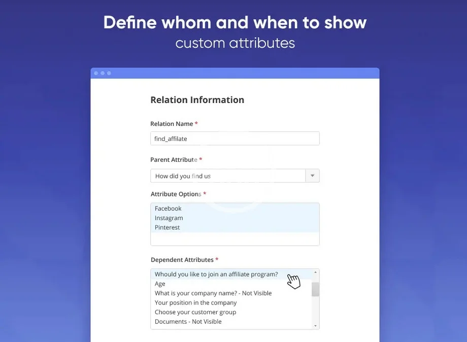 Display additional attribute fields on the registration page to collect important customer data. Create customer attributes of various types to effectively gather as much information as you need.
