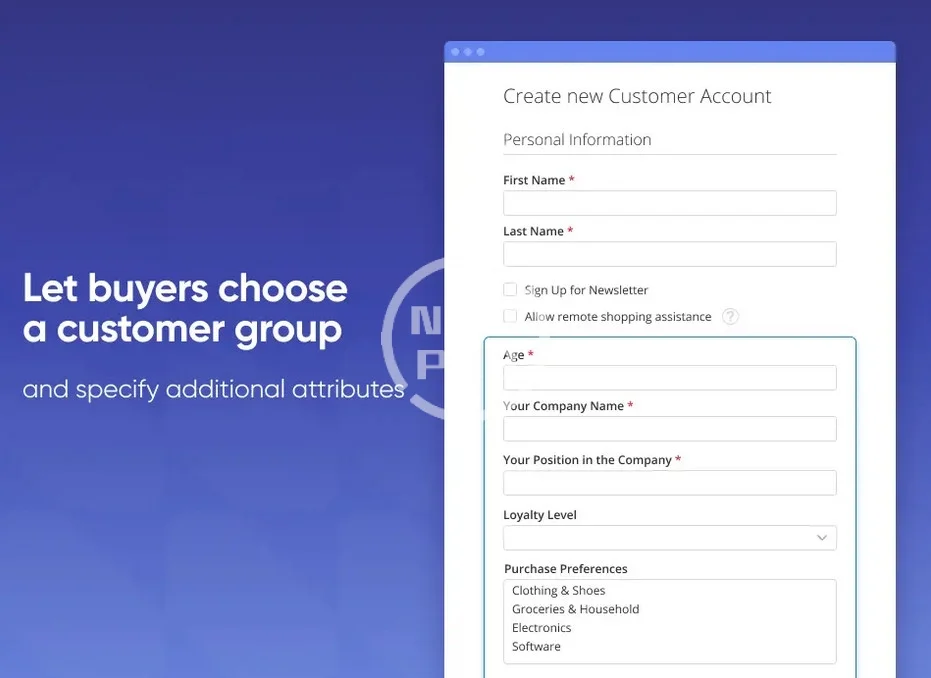 - Display additional attribute fields on the registration page to collect important customer data.