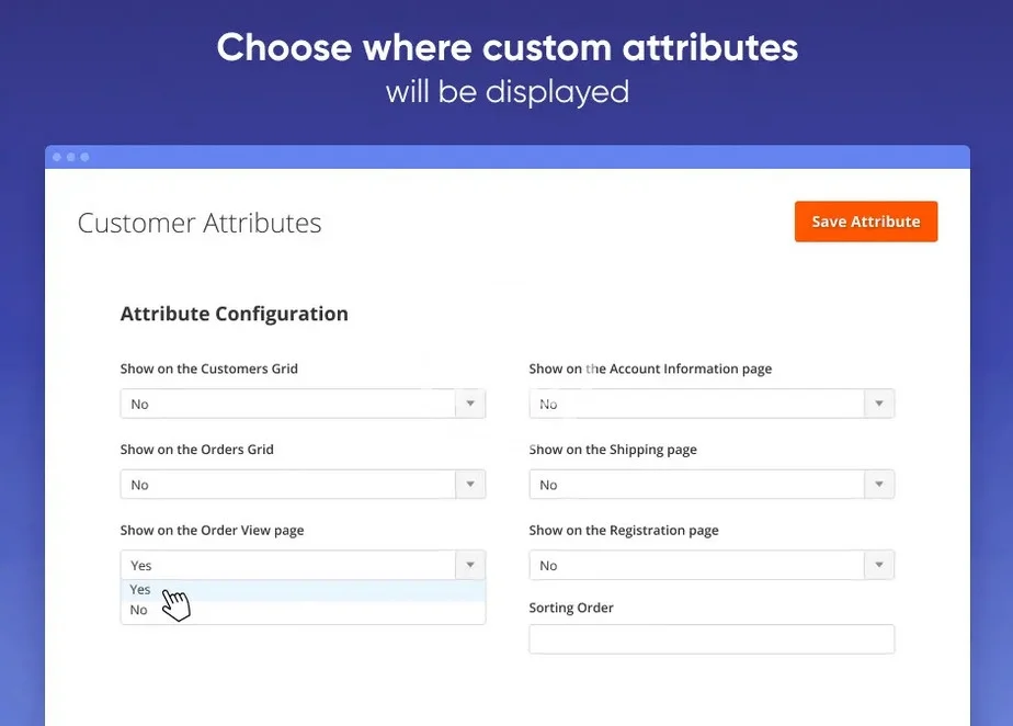 - Manage customer attributes from the admin panel