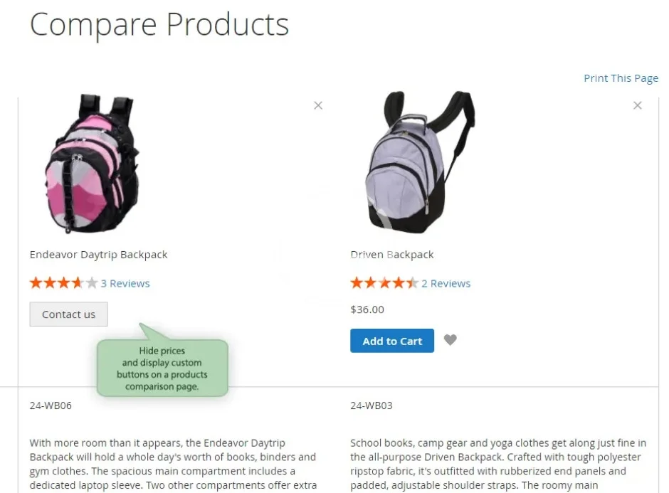 - Disable adding to cart, wishlist and comparison