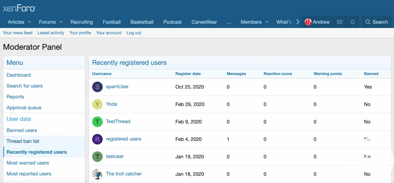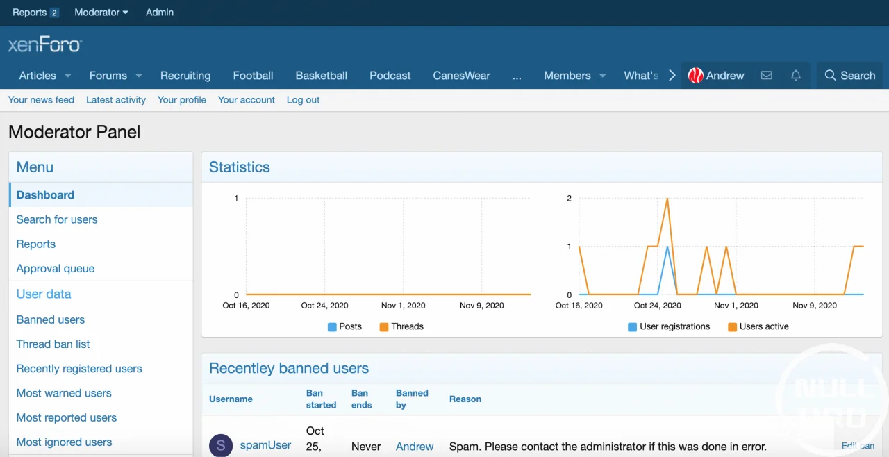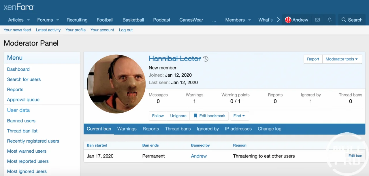 [Andrew] Moderator Panel provides moderators enhanced visibility into user behavior and additional moderator features. The thought is that by providing better visibility to warnings, reports, thread bans, and ignores, moderators will be able to identify problem users faster and will rely less in impulse when making decisions on users. All features are permission controlled and can be enabled or disabled.