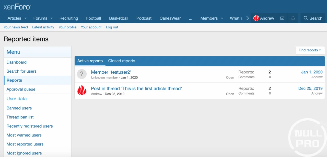 - Reports and Approval queue will display the moderator sidebar