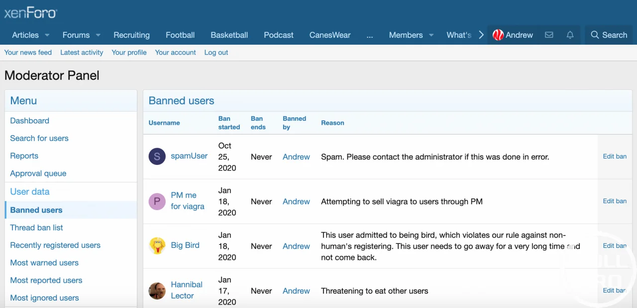 - View banned users list
