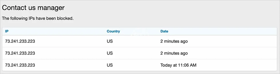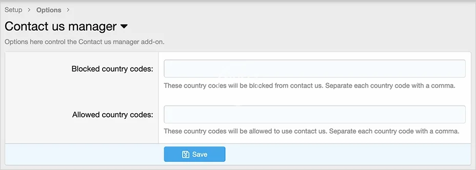 - Blocks contact us for specified countries.