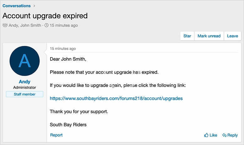 - Creates a conversation when a members account upgrade has expired.