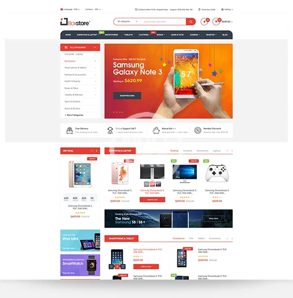With an elegant and modern style, Boxstore Magento Theme has all things you need and bring your customers a fresh and active interface. Because of multistore magento template, Boxstore is perfect to show digital, construction tools, organi, accessories,.. for your store.
