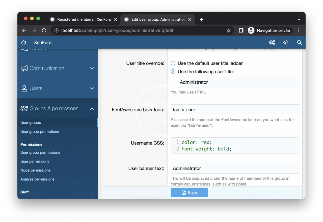This addon allow to you add an FontAwesome icon on front of username, this icon is personnalizable inside settings of user groups.