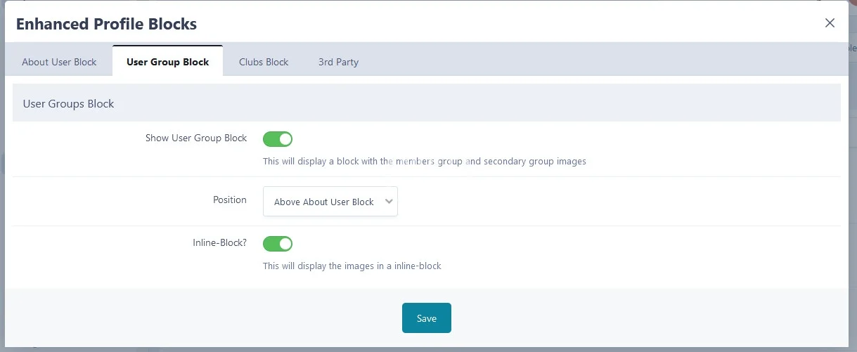 - Choose to display it above or below the about user block