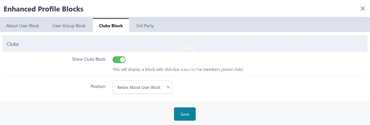 - Display the users clubs as icons (The club name will show on hover)