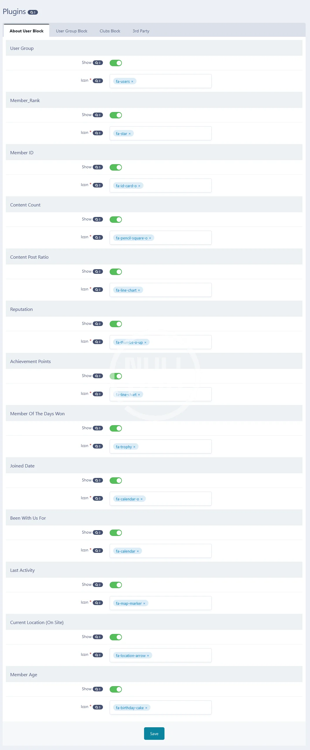 - Enhance the about user block with more detailed member information of the member each with its own font-awesome icon