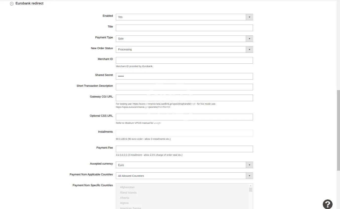 This payment gateway uses the redirect method where the user is redirected to the processing site (Eurobank) to make the actual payment.