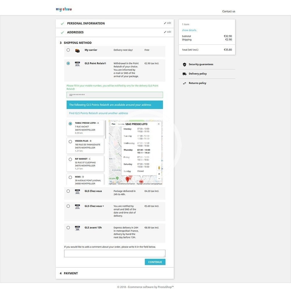 All GLS France offers available for your customers easily. They can choose the delivery method that suits them. This module integrates the generation of delivery labels.