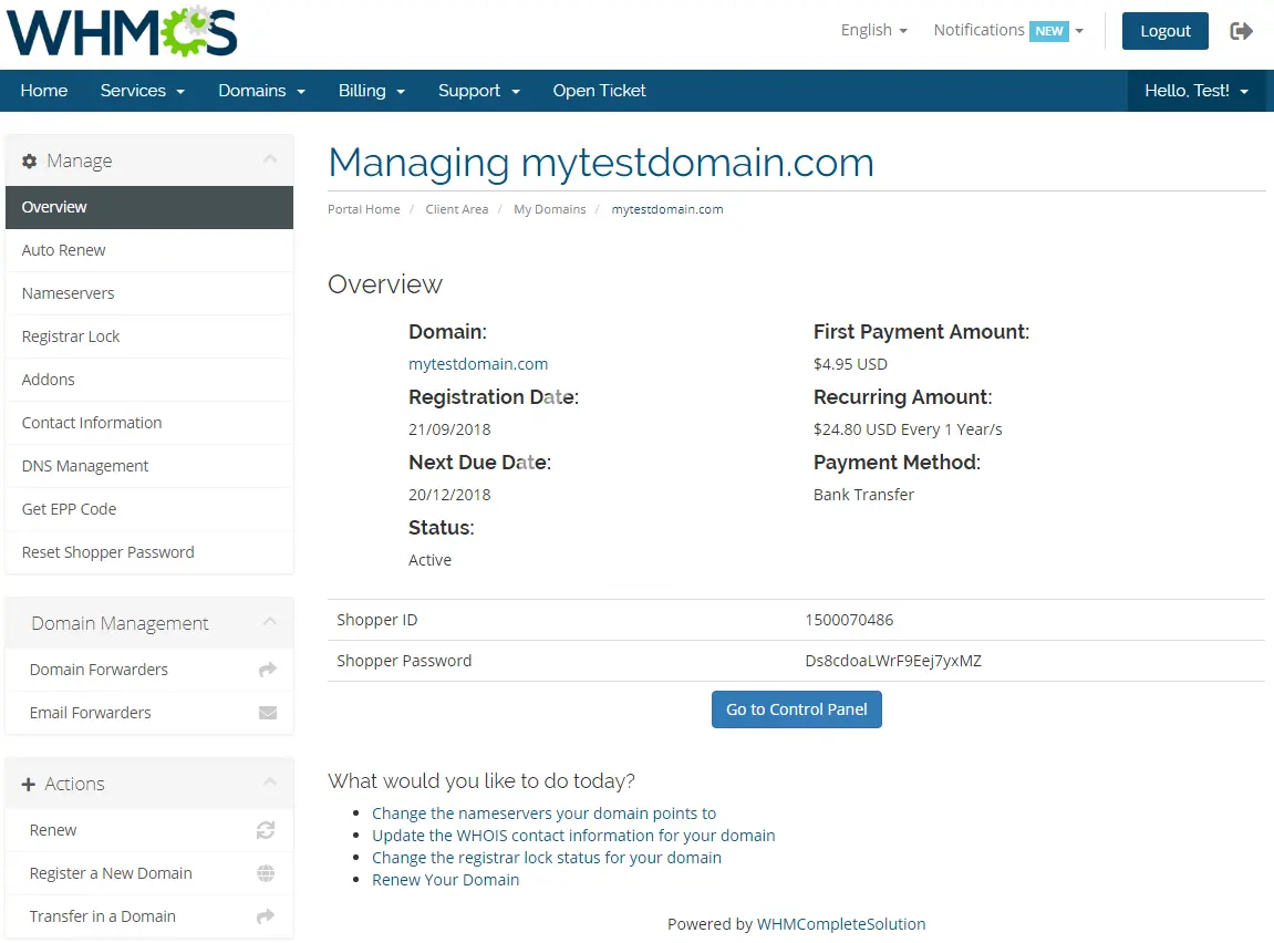 - Send Email Details With Shopper ID And Password After Domain Registration Or Transfer