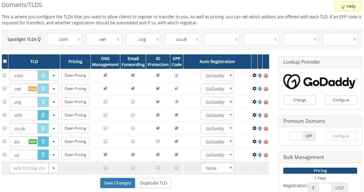 - Enable GoDaddy Domain Lookup Provider