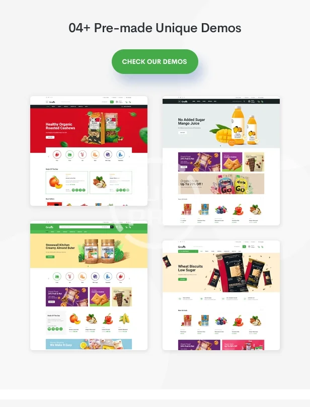 Grano organic is a responsive Opencart theme created specifically for online stores selling healthcare products such as nutritious and organic food, fruits,...Layout is simple and elegant with 4 home page layouts for your choice.