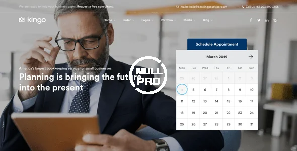 Kingo WordPress Theme is a responsive WordPress theme created especially for small businesses such as accountant, barber, lawyer, financial advisor, yoga studio, healthcare & medical, restaurant, bed & breakfast hotel, life coach, tourism etc. Built with booking & calendar management for small businesses. Kingo support responsive layouts built especially for small businesses website so it looks great on all devices. It also support Woocommerce for online payment with booking and various ready to use layouts for different kinds of small business and band which can be imported with one click.