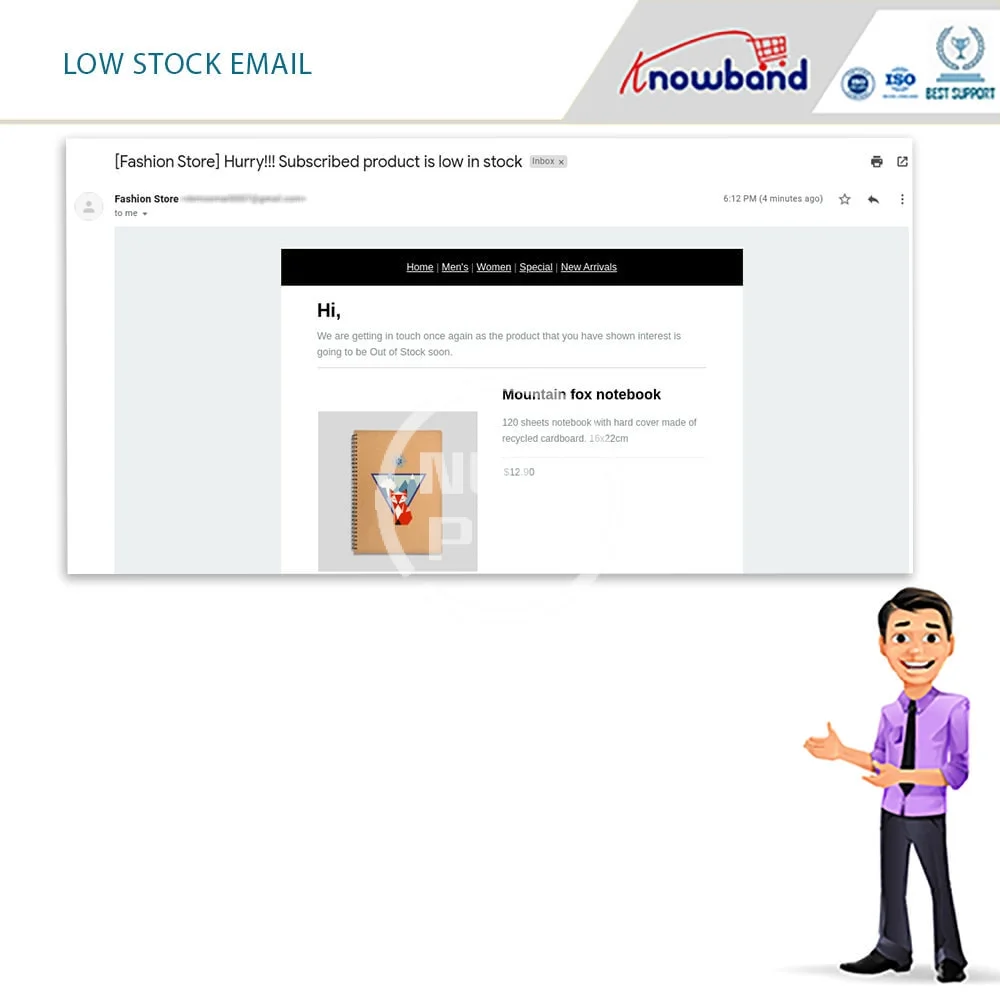 Prestashop Back in Stock Notification module allows the customers to subscribe to the email alerts for the Out of Stock products. An automated email will be sent to the customers who have opted for the out of stock notification.