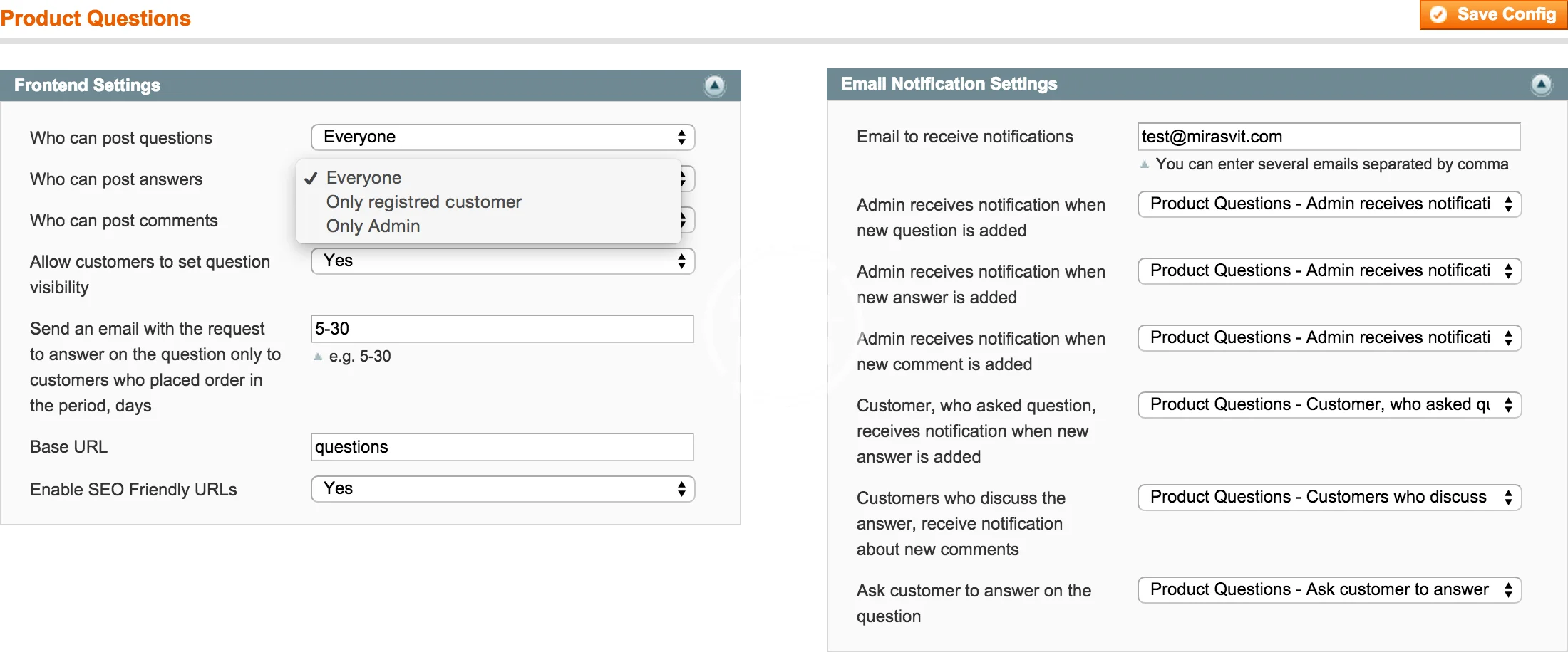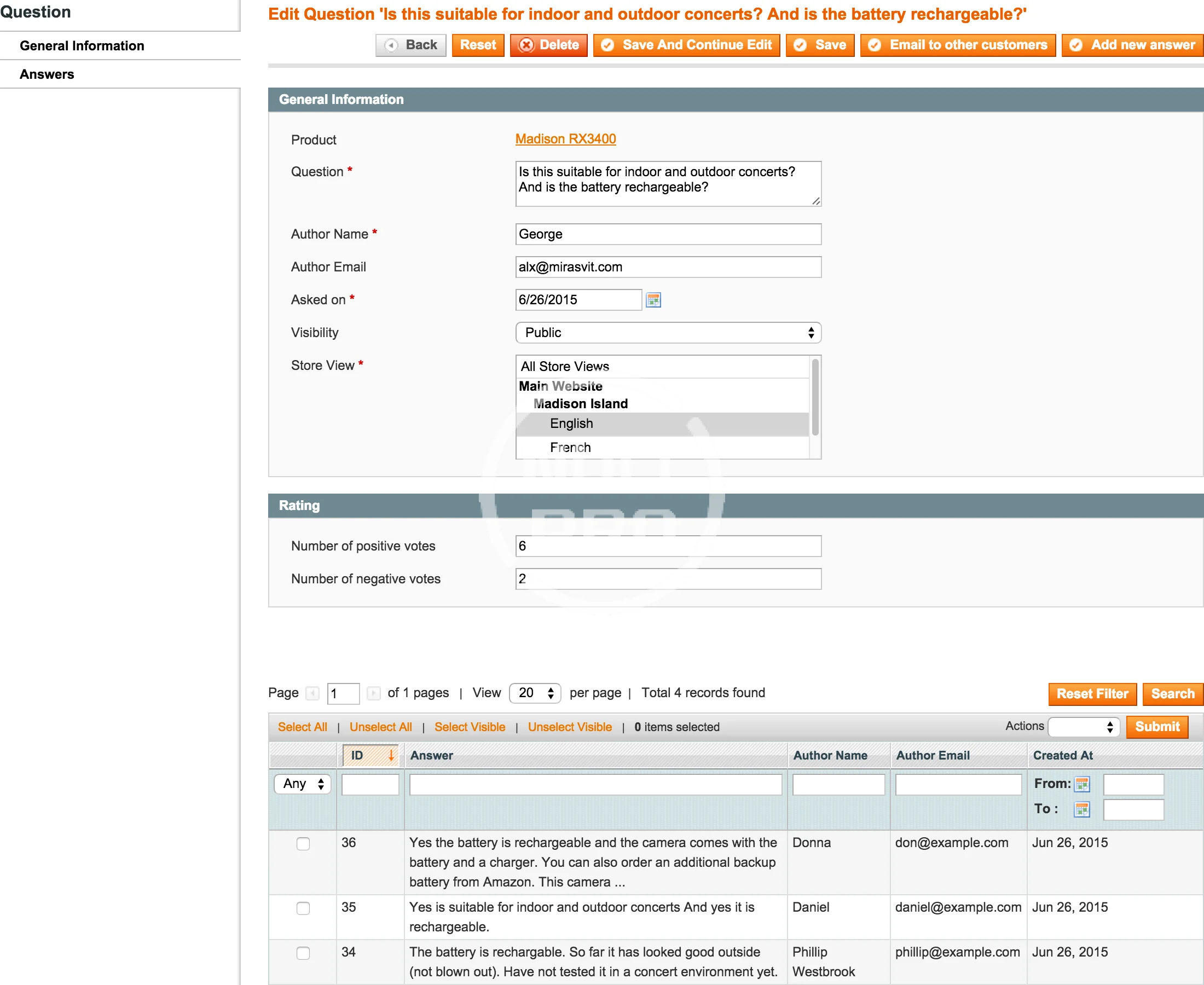 - Visibility - the perfect ability to set up the permission to view questions (privately or give the permission to display them for everyone). This ability allows your customers to ask questions privately, therefore, the question and the answer will be visible only to that person who asked the question.