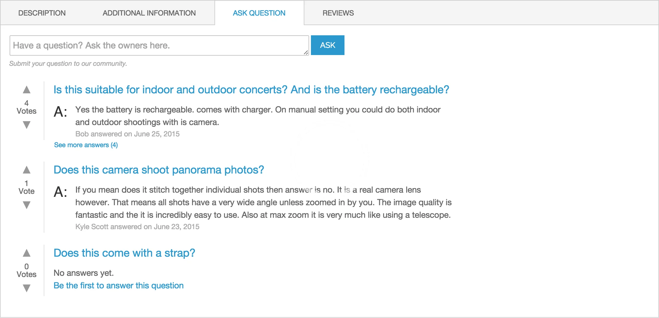 - Ranking system. Every customer can rate the usefulness of the question or answer.