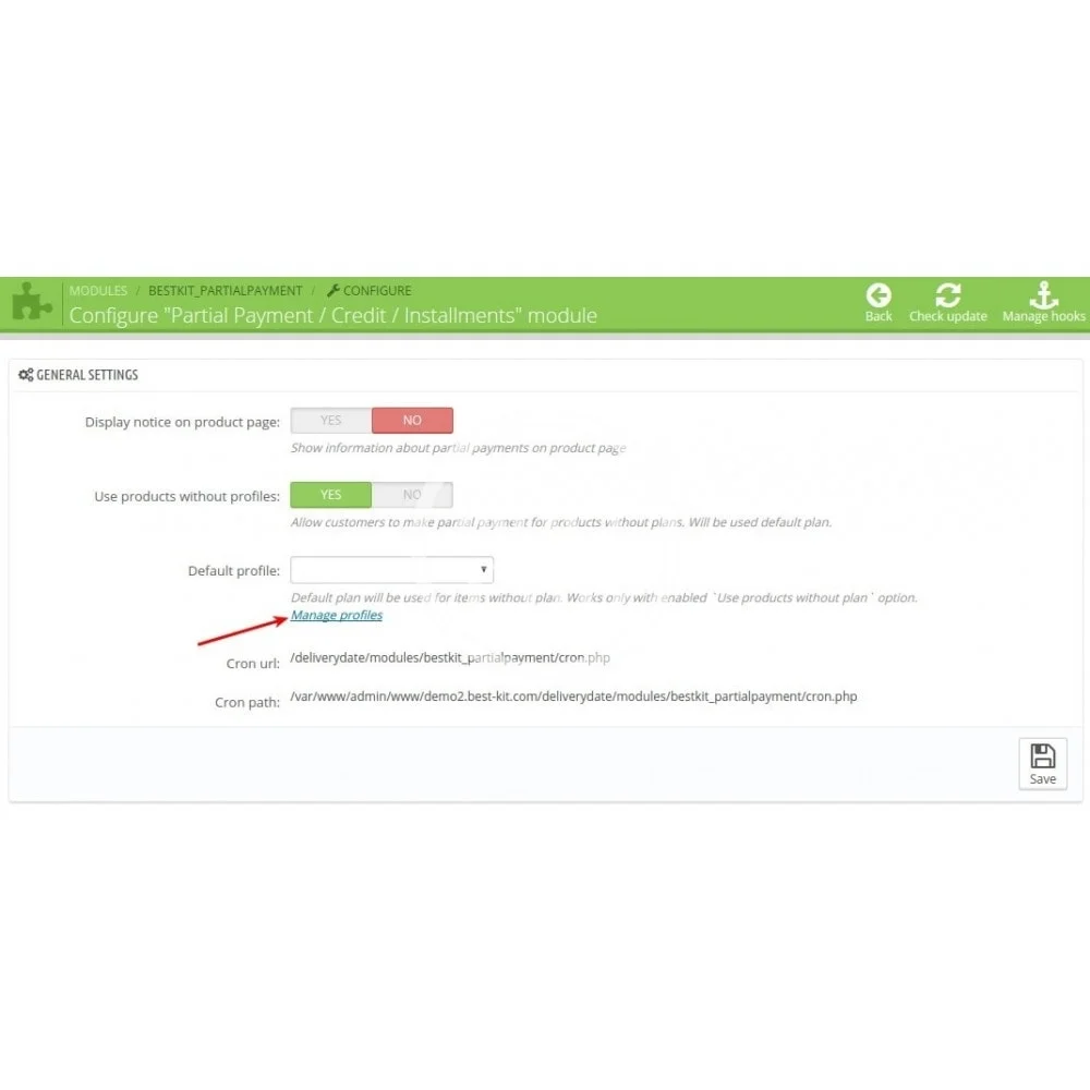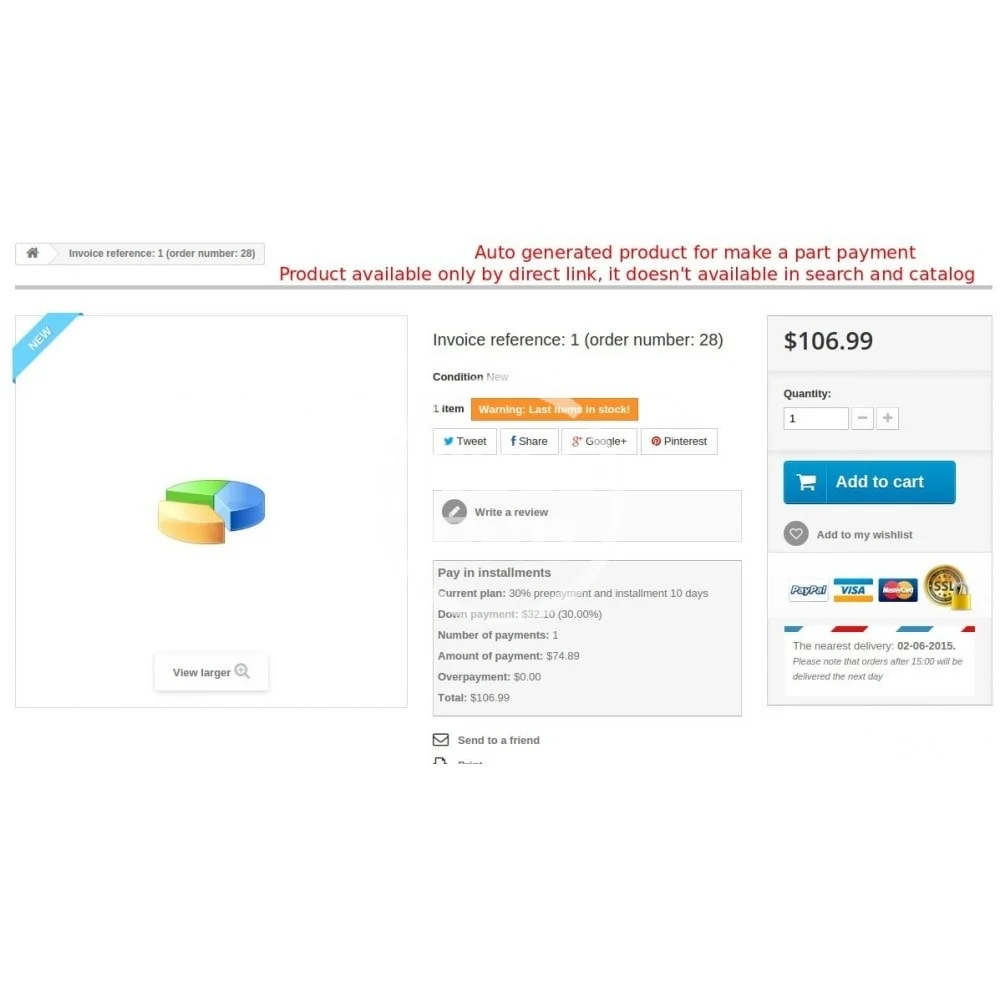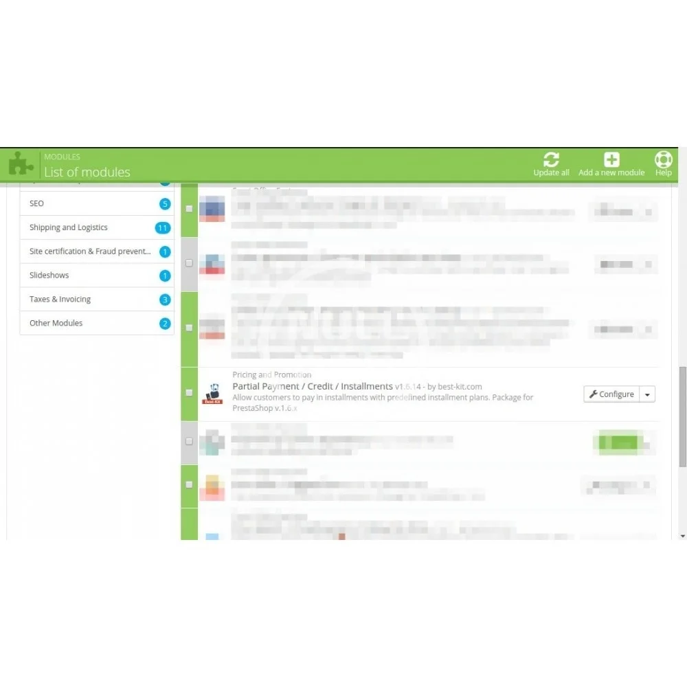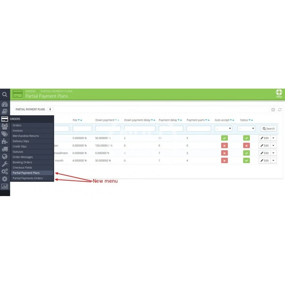 PrestaShop Partial Payment / Credit / Installments module gives you the ability to grant credits and accept deferred payments in your shop. With this extension you can create a various credit/installment payment plans and assign them to specific product, thus making the offer available to certain customers.