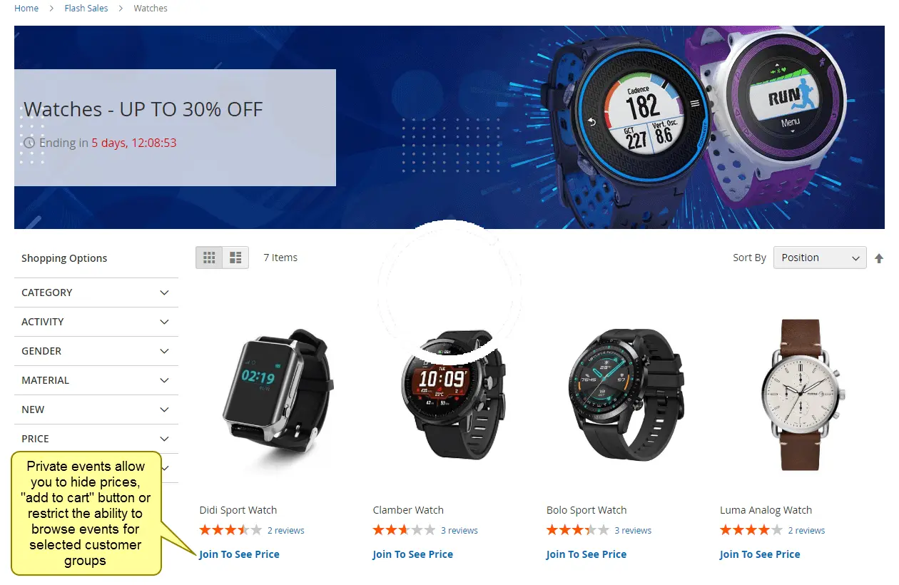 allows to create Private Sale, Flash Sales, Daily deals with countdown