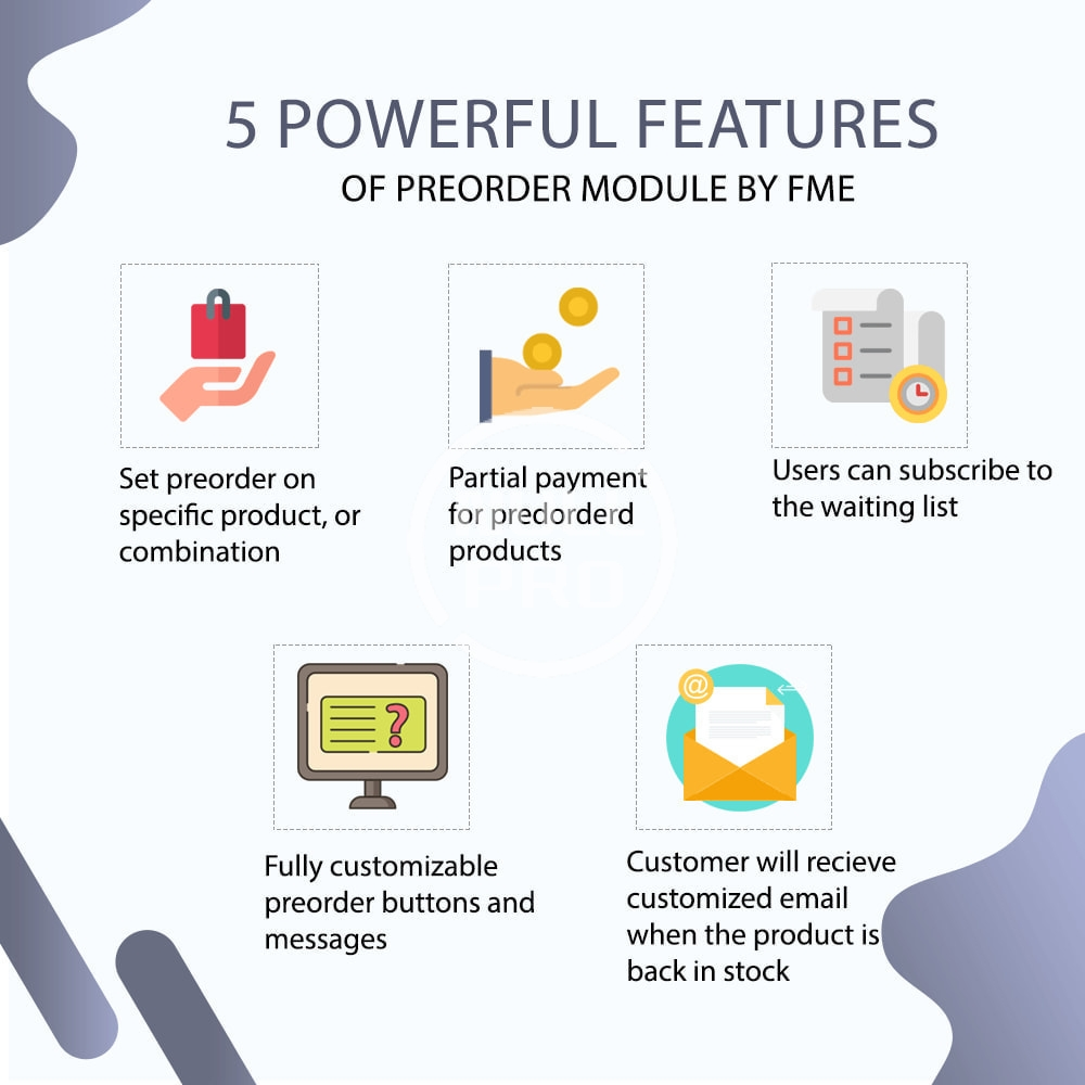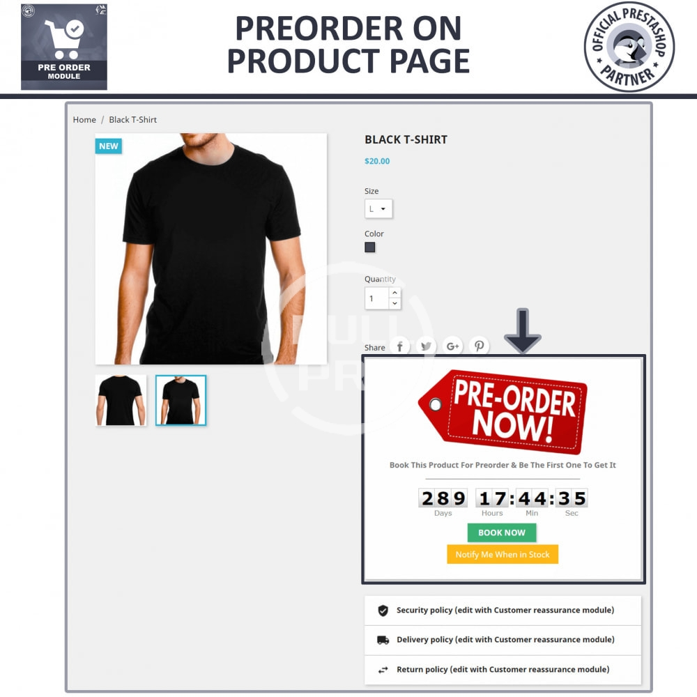 Top Preorder Module on Prestashop. Pre-Order Module enables your customers to pre-order your products in advance or subscribe to the product waiting list. The customers will receive an email notification when the pre-ordered product is back in stock.