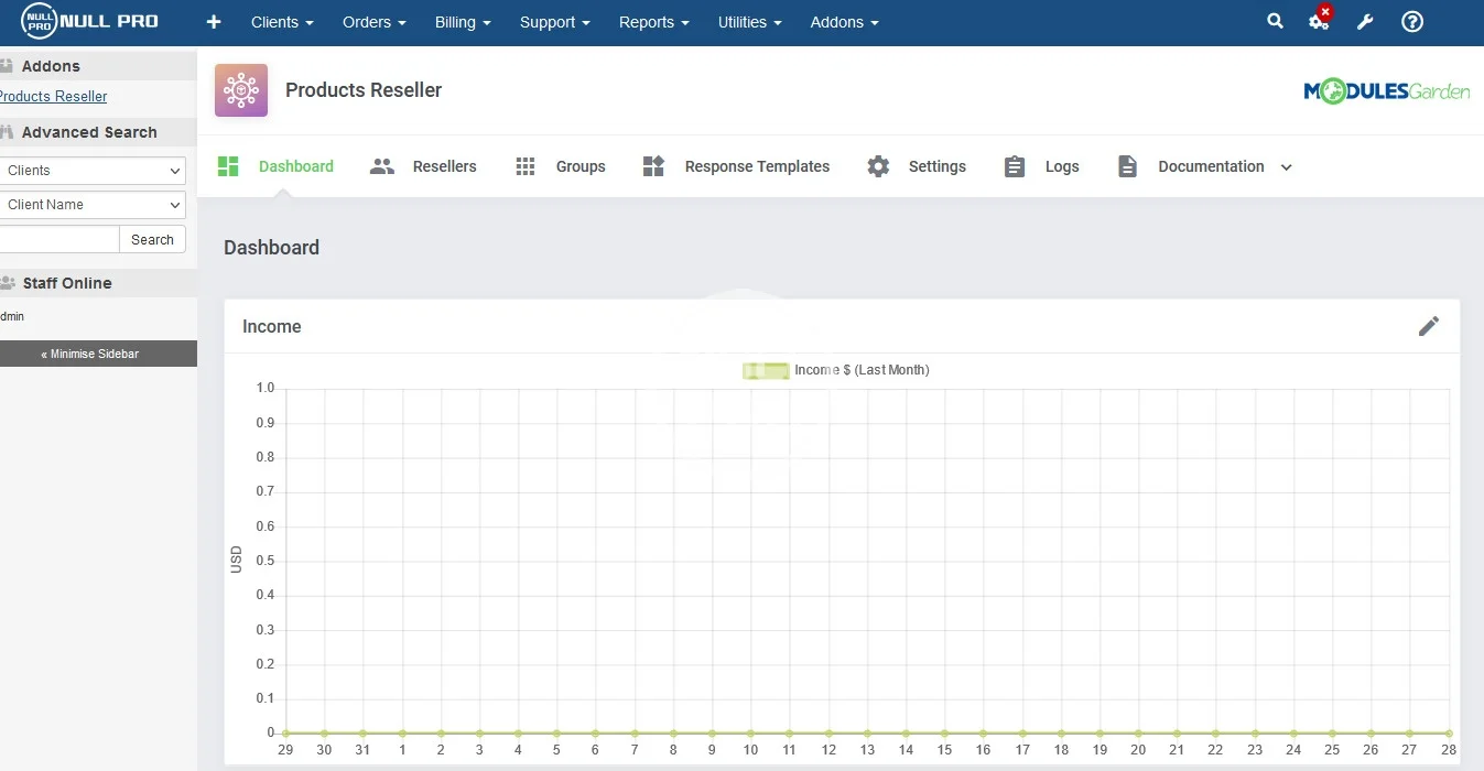 As a provider, once you configure the main product in WHMCS and create your own integration module to be installed by resellers in their systems, you will possess the ultimate freedom of handling all details of your reseller network, and setting up different pricing rates for each group individually. With equal ease, you will access valuable graphs and summaries on income generated from reselling your products, change their time scope, and even single out the products you are interested in.