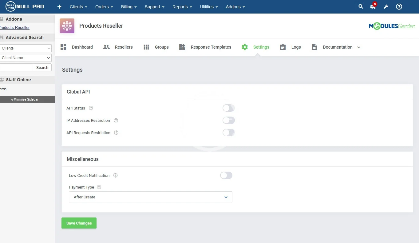 The brilliance behind Products Reseller For WHMCS lies in its capability to equip your WHMCS with a full toolkit for reselling your products, tracking income and handily managing your reseller groups. The module also features its own API aimed at allowing your resellers to offer products within any other chosen platform.
