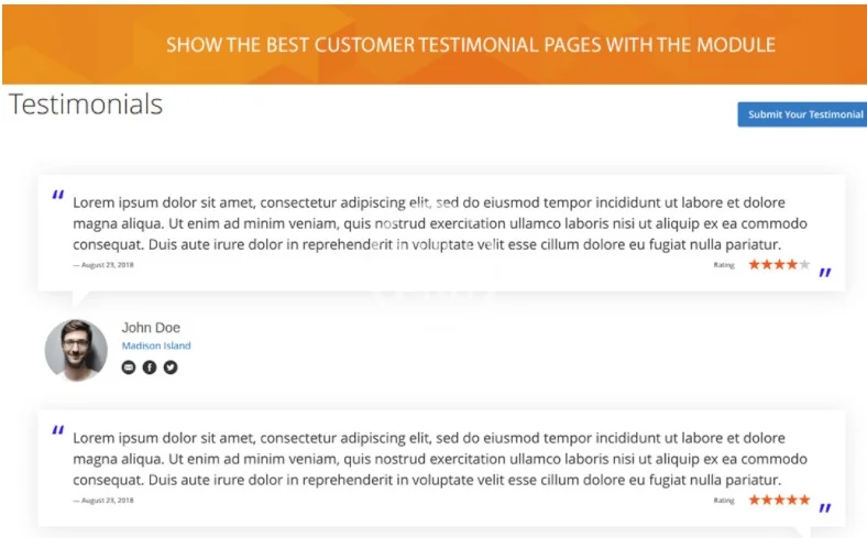 What do your clients say about your store? Do they trust you online? If yes, we recommend you to tell other consumers you have name and fame. You can do it by placing the testimonials list throughout your Magento 2 store.