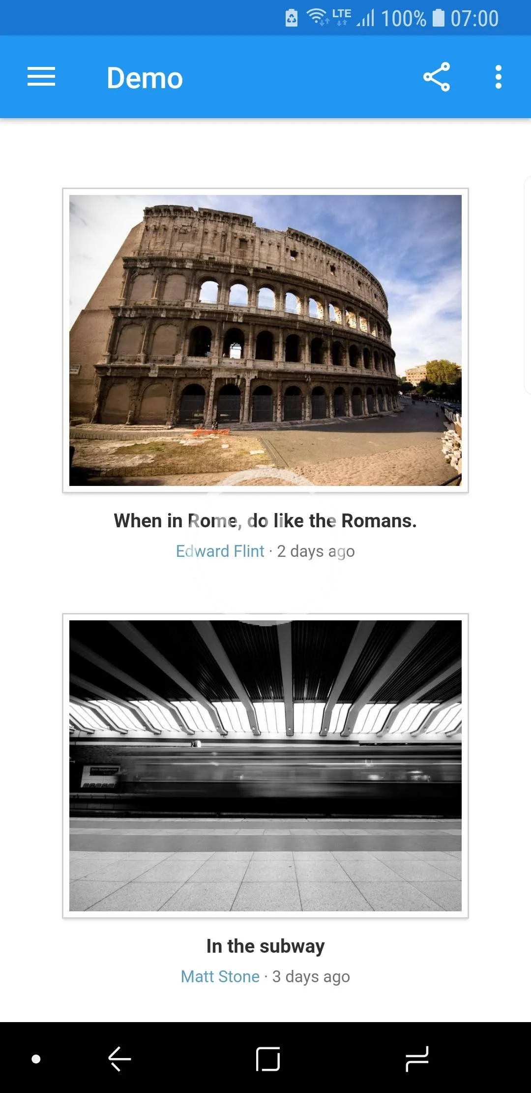 More screen space with the hideable toolbar. This familiar navigation pattern can also be seen in Chrome for Android. Scroll down to hide the toolbar and scroll up to show it! - Pull-to-refresh