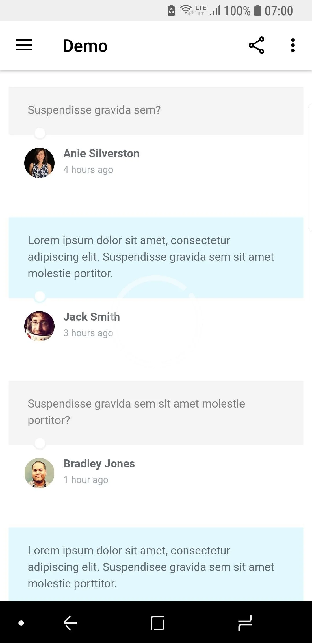 A loading bar is shown to indicate progress, this will hide when the page is done. You can choose to show this loading bar as well as a Pull-To-Refresh indicator. - About dialog