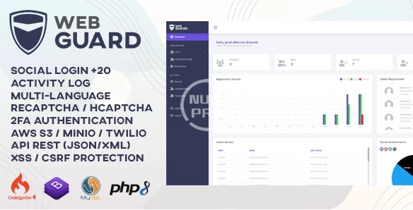WebGuard – Advanced PHP Login and User Management is a PHP application, written on CodeIgniter 4 framework with mysql database, which allows you to better manage your users and permissions. The application is also a useful script for developers who want to save many development hours when creating a framework from scratch.