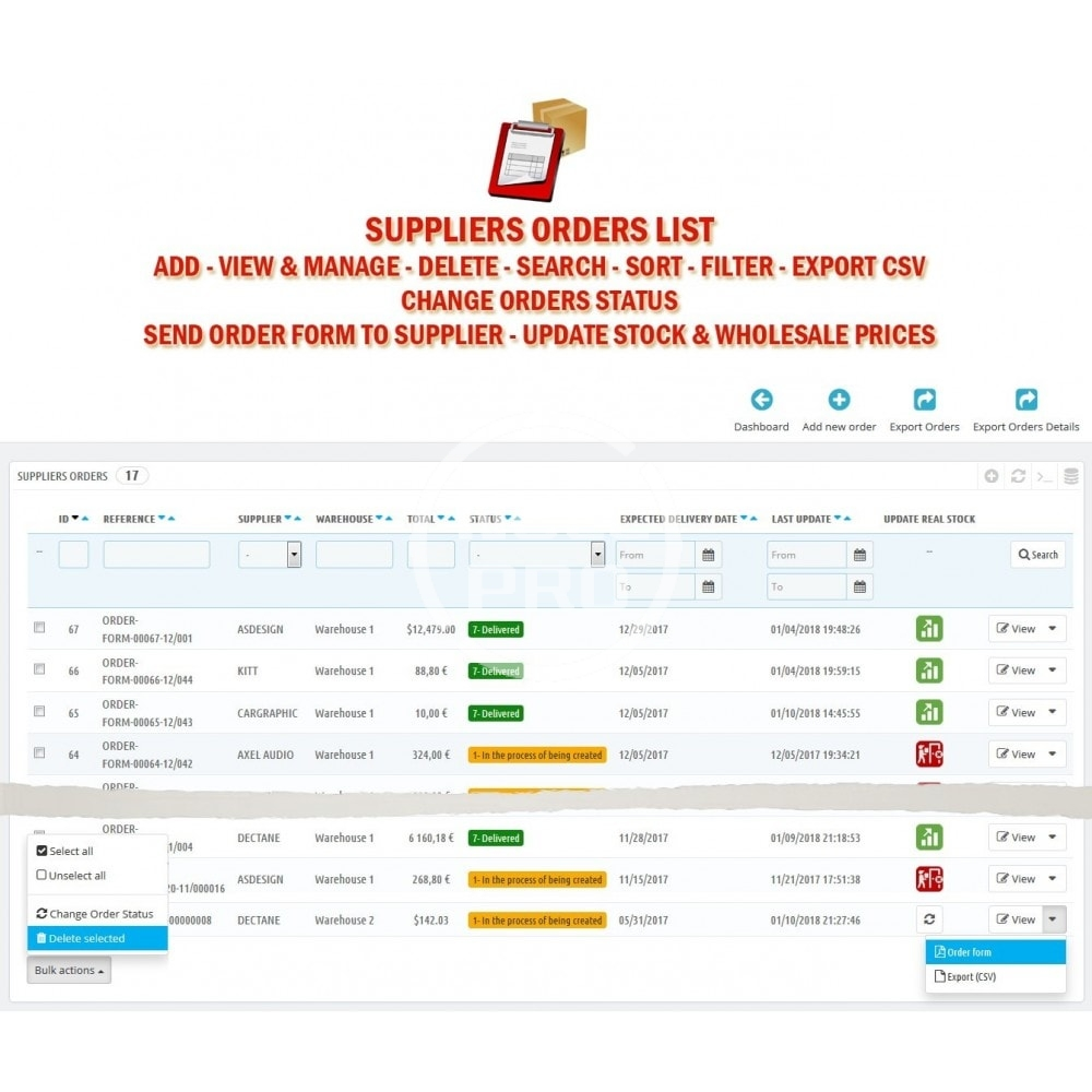a Boostmyshop ERP's module providing the features to run your supply orders